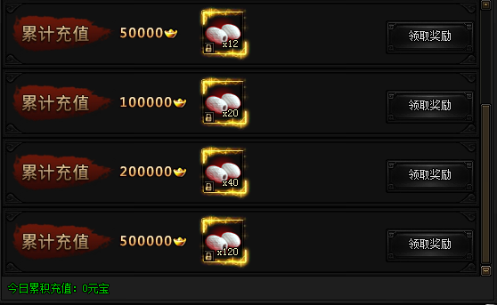 活动期间内,每日累计充值指定金额即可领取奖励。
